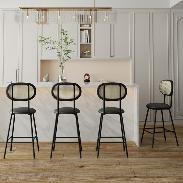 - 【Quality Material】 This practical leather counter stool design provides superior comfort, featuring foam and PU leather upholstered seats that are soft and durable. Natural rattan backrest and rubberized wood frame, solid iron frame, support 250 LBS.